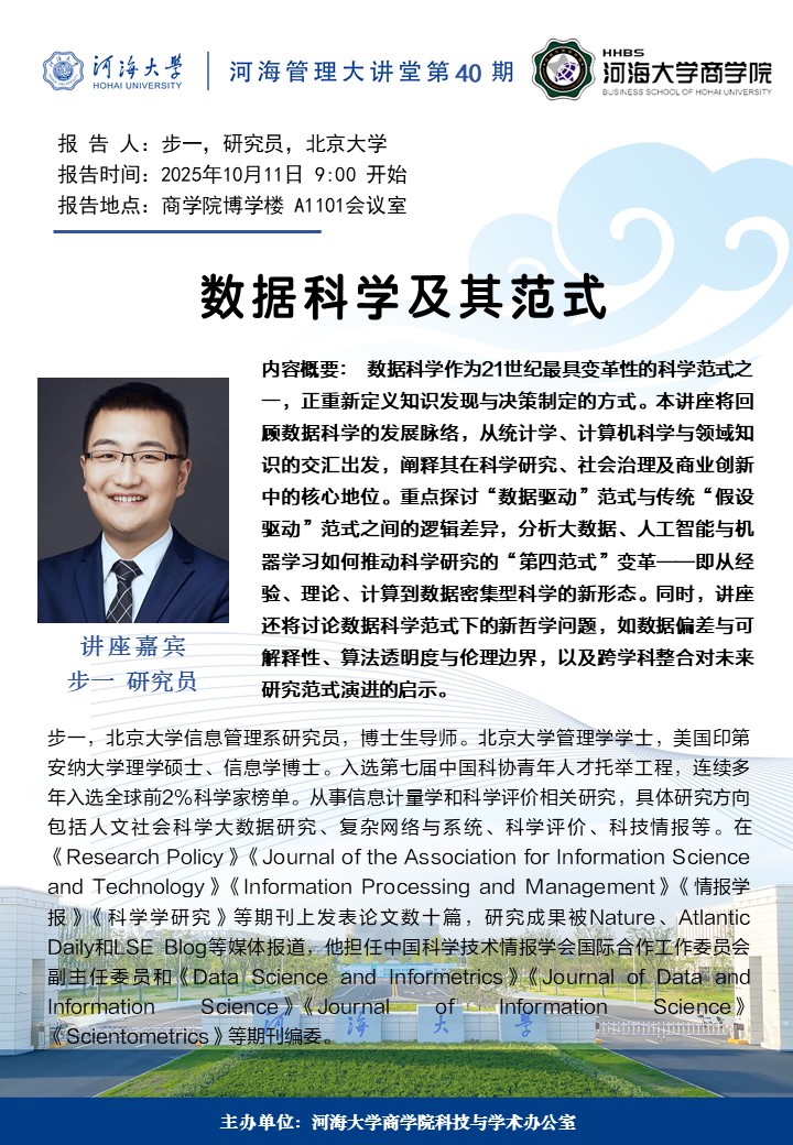 学术讲座通知:数据科学及其范式