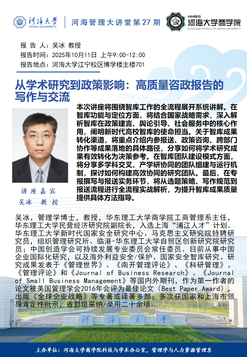 学术讲座通知:智库工作经验交流